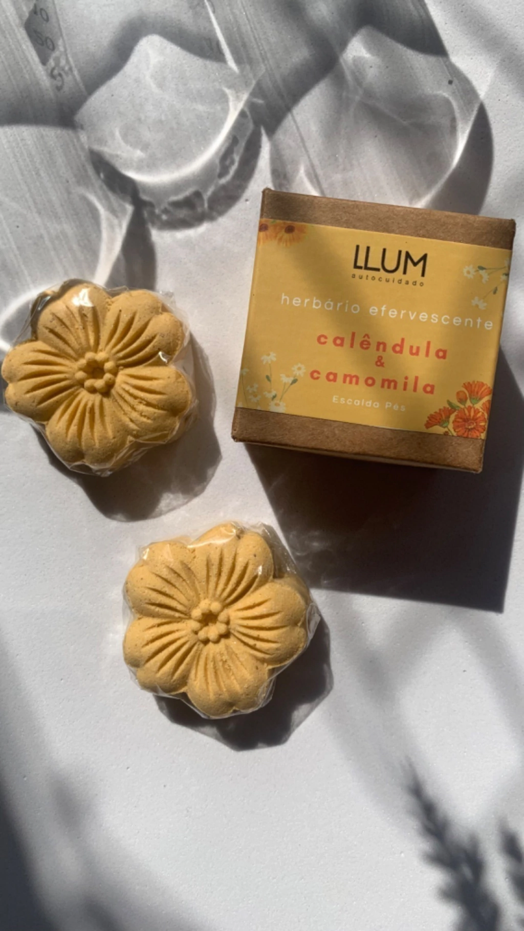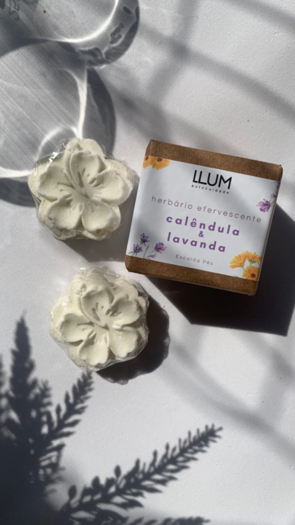 Nossos escalda pés efervescente é feito com sais, ervas, óleo vegetal e óleos essenciais.